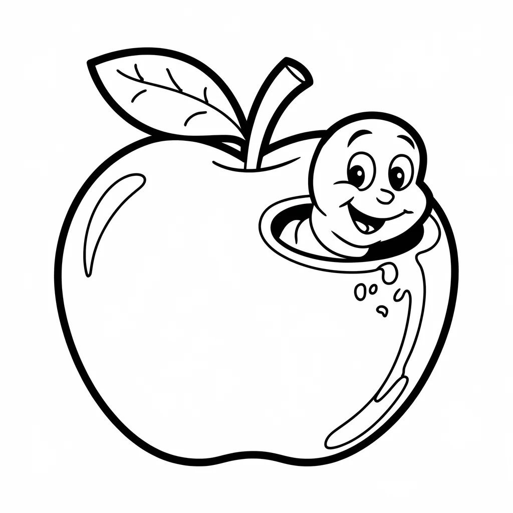 This classic design shows a happy little worm peeking out from a juicy apple. Kids can bring the scene to life with bright reds, greens, or any colors they choose. The familiar image helps children connect with the character while letting their creativity flow. Each part of the drawing offers chances to practice different coloring techniques. Young artists can add texture to the apple’s skin or make the worm stand out with bold colors. The design teaches about size and space as children work within the apple’s shape.